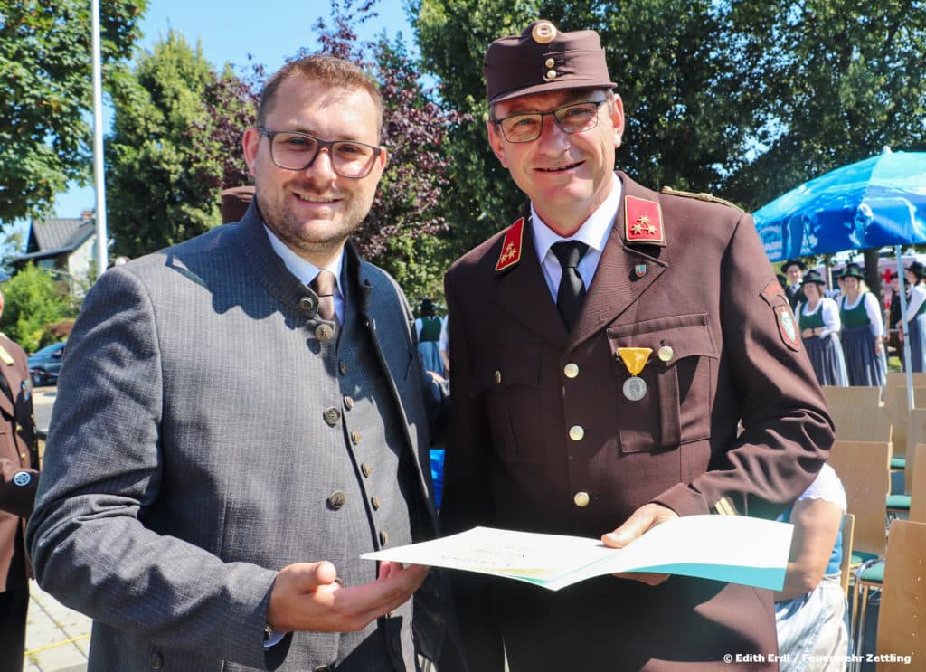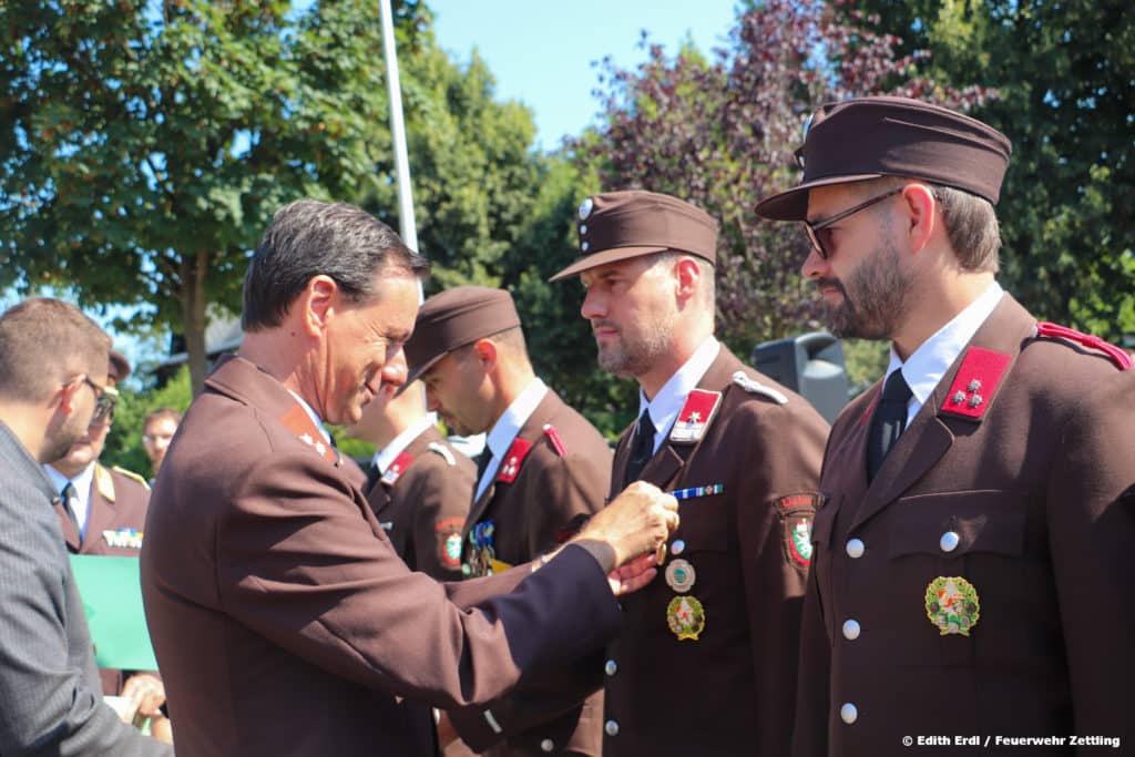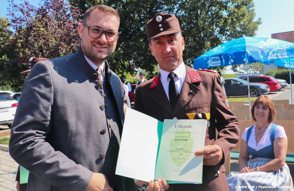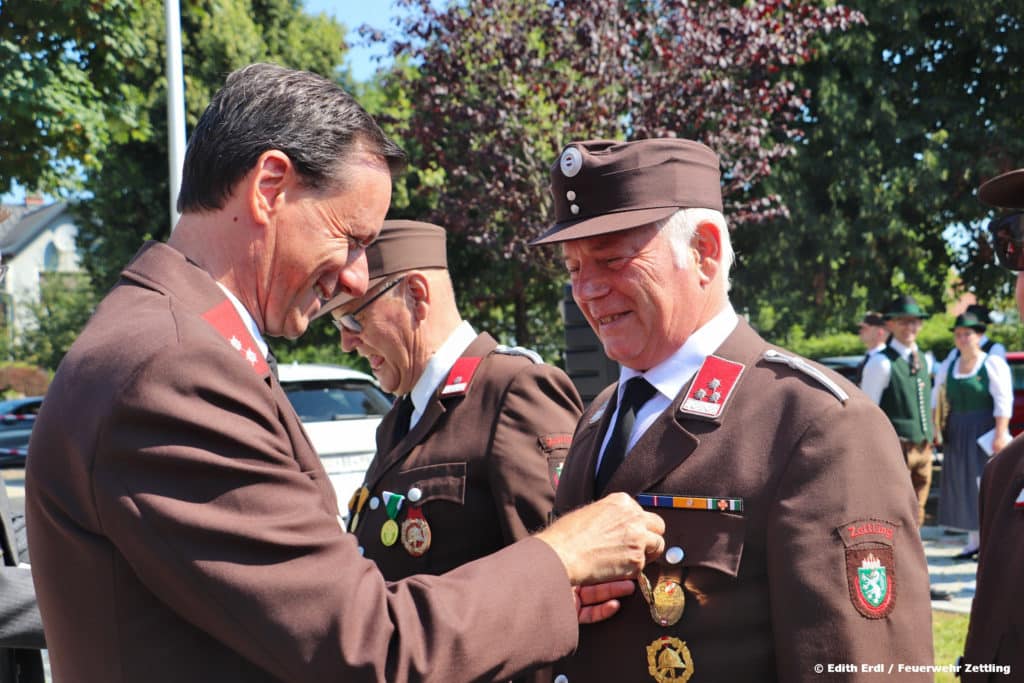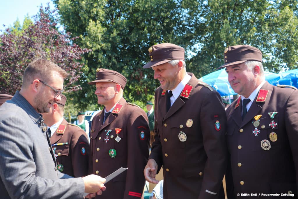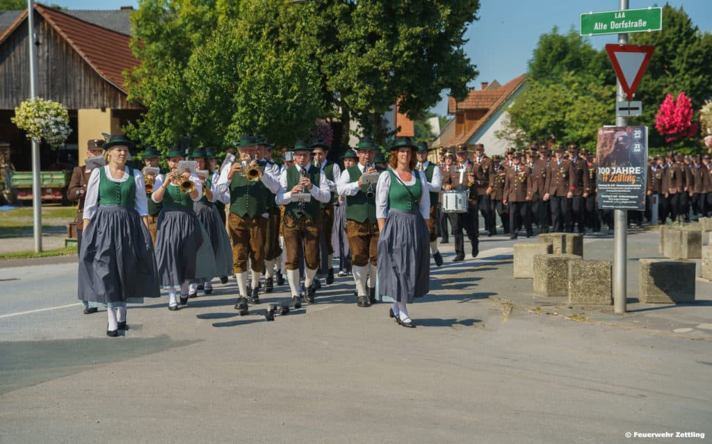 Mit großer Freude blickten wir am 20.07.2024 (Sommernachtsfest) und 21.07.2024 (Abschnittsfeuerwehrtag mit Frühschoppen) auf 100 Jahre mutigen Einsatzes und unermüdlichen Engagements zurück. Unser Jubiläum ist ein Anlass, um nicht nur die Geschichte und die Errungenschaften unserer Wehr zu feiern, sondern auch die Werte und Prinzipien zu ehren, die uns seit einem Jahrhundert leiten. Die Gründung der Freiwilligen Feuerwehr Laa – später Zettling – im Jahr 1924, legte den Grundstein für eine stolze Tradition der Hilfsbereitschaft, des Mutes und der Kameradschaft. In den vergangenen 100 Jahren haben unsere Feuerwehrfrauen und -männer zahllose Herausforderungen gemeistert, stets bereit, ihr Leben zum Schutz anderer einzusetzen. Die jetzigen Kommandanten Gernot Pölzl und Daniel Schlar feierten mit ihren 87 Kamerad:innen und zahlreichen Gästen und Ehrengästen den runden Geburtstag.