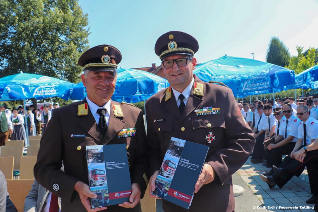 Mit großem Engagement und Liebe zum Detail haben Daniel Schlar und Franz Schmidt unzählige Stunden ihrer Freizeit geopfert, um diese Festschrift zu gestalten. Rund 1000 Stunden verbrachten sie damit, alte Protokolle zu durchforsten, historische Fotos zu sichten und Interviews mit langjährigen Mitgliedern zu führen. Das Ergebnis ist ein wertvolles Dokument, das die Geschichte der Feuerwehr Zettling lebendig werden lässt.
