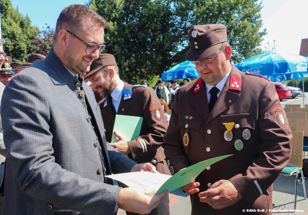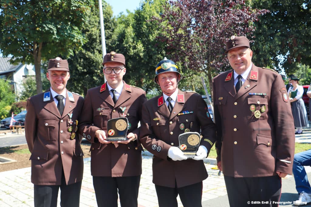 Ein herzliches Dankeschön an Daniel Schlar und Franz Schmidt für ihre unermüdliche Arbeit und ihr außergewöhnliches Engagement. Ihre Mühe hat sich mehr als gelohnt und wir sind dankbar, eine so umfassende und liebevoll gestaltete Dokumentation unserer Geschichte in Händen halten zu können. Für ihre Arbeit erhielten die beiden Zuge des Abschnittsfeuerwehrtages eine Tisch-Uhr als Erinnerung.