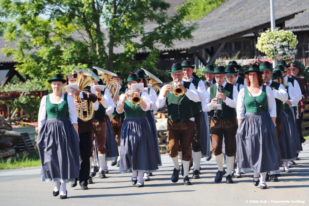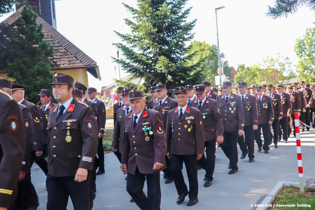 Um 10 Uhr formierten sich die Marktmusik Unterpremstätten-Zettling (MUZ) und die Feuerwehrkameraden vor dem Gasthaus Kaufmann zur Defilierung. Unter den Ehrengästen konnten wir unseren Hausherrn Bürgermeister Dr. Matthias Pokorn, Vizebürgermeisterin Ingrid Baumhackl, Nationalratsabgeordneten Ernst Gödl, Bezirkshauptmann Hofrat Mag. Andreas Weitlaner und Vikar Norbert Glaser feierlich begrüßen.