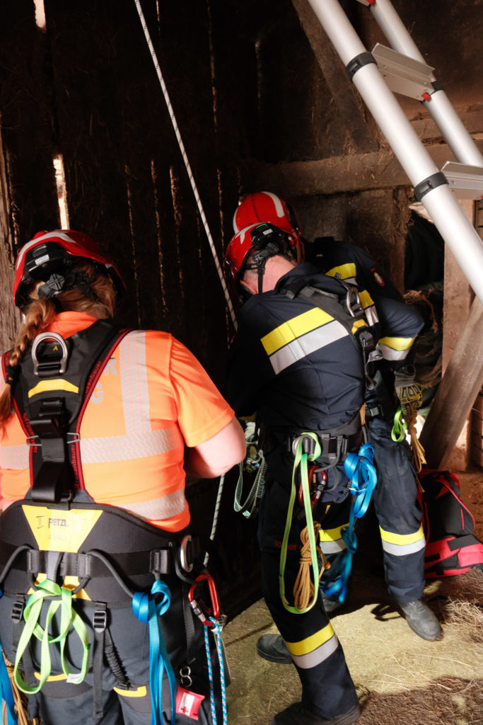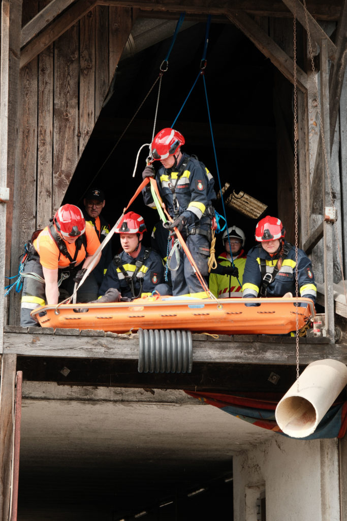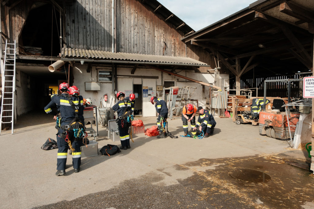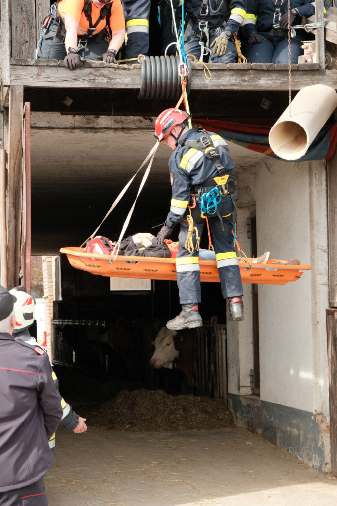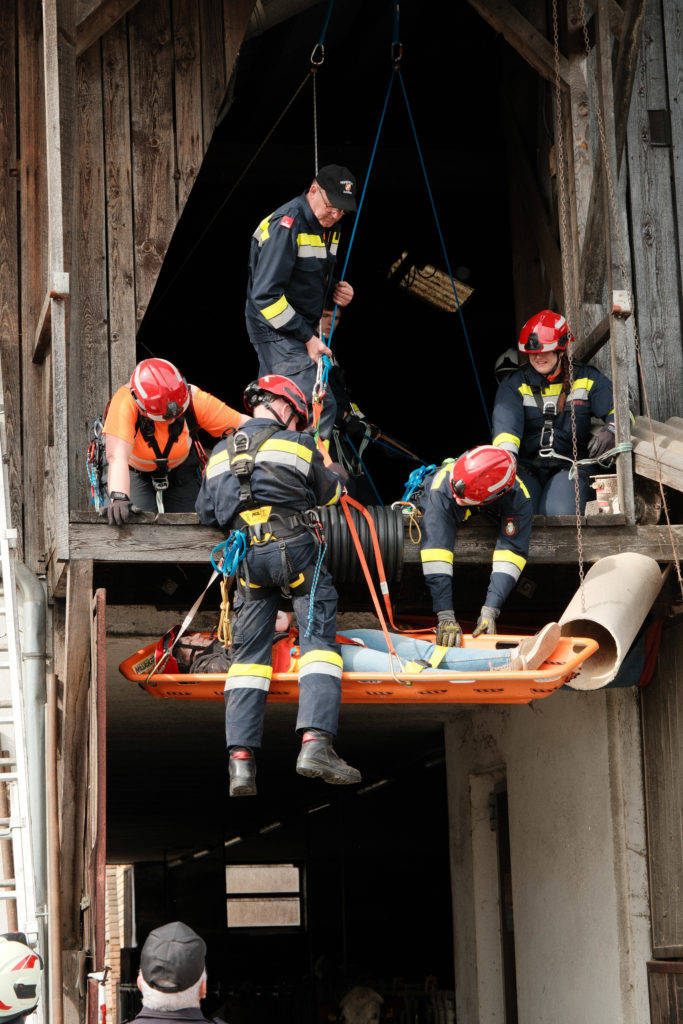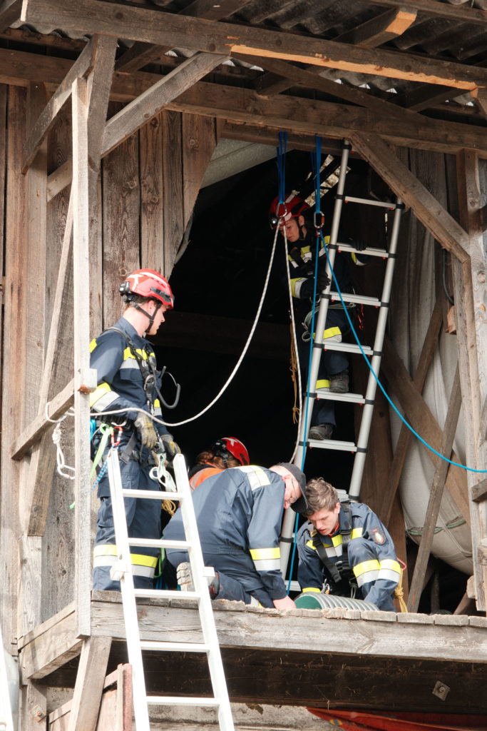 Im Rahmen der Osterübung wurden gleich mehrere Einsatzszenarien vorbereitet, die unterschiedliche Anforderungen an Mannschaft und Gerät stellten. So stand unter anderem eine Menschenrettung mittels Höhenrettung am Übungsplan. Im Bereich Menschenrettung und Absturzsicherung (MRAS) wurde das sichere Retten einer Person aus tiefen Lage beübt. Dabei kam es besonders auf sauberes Arbeiten, gute Absicherung und abgestimmte Abläufe an.