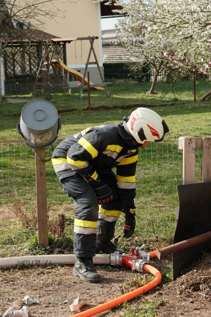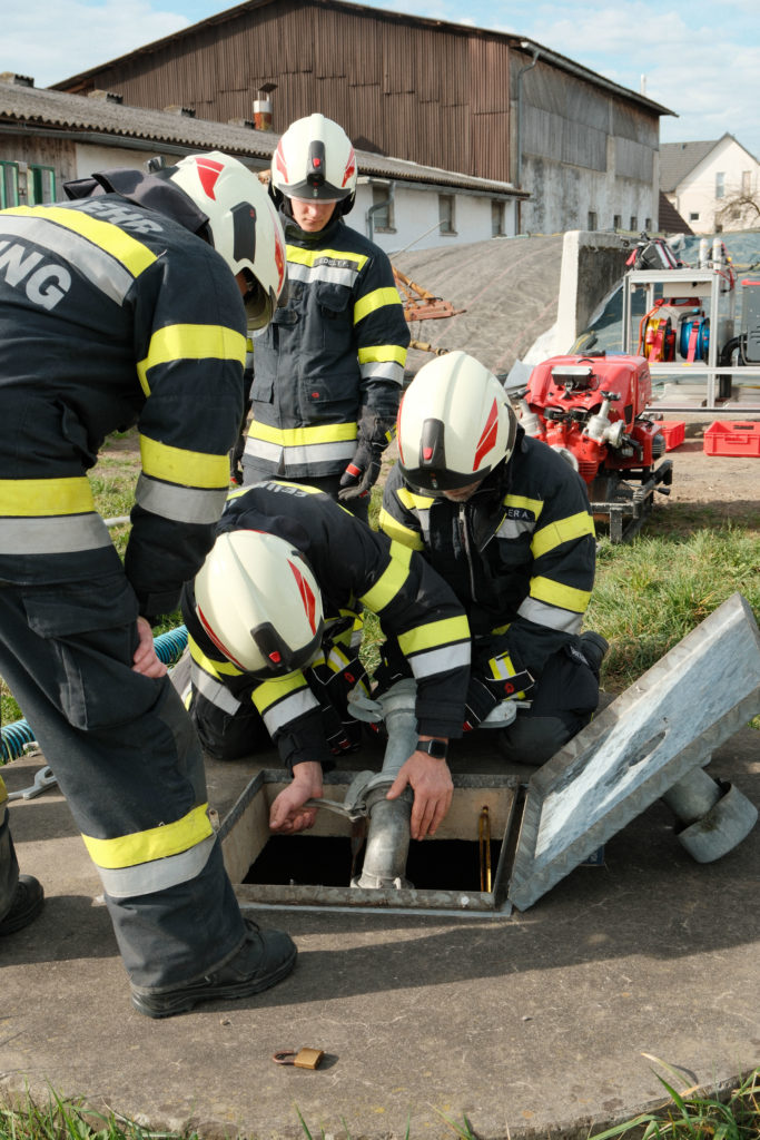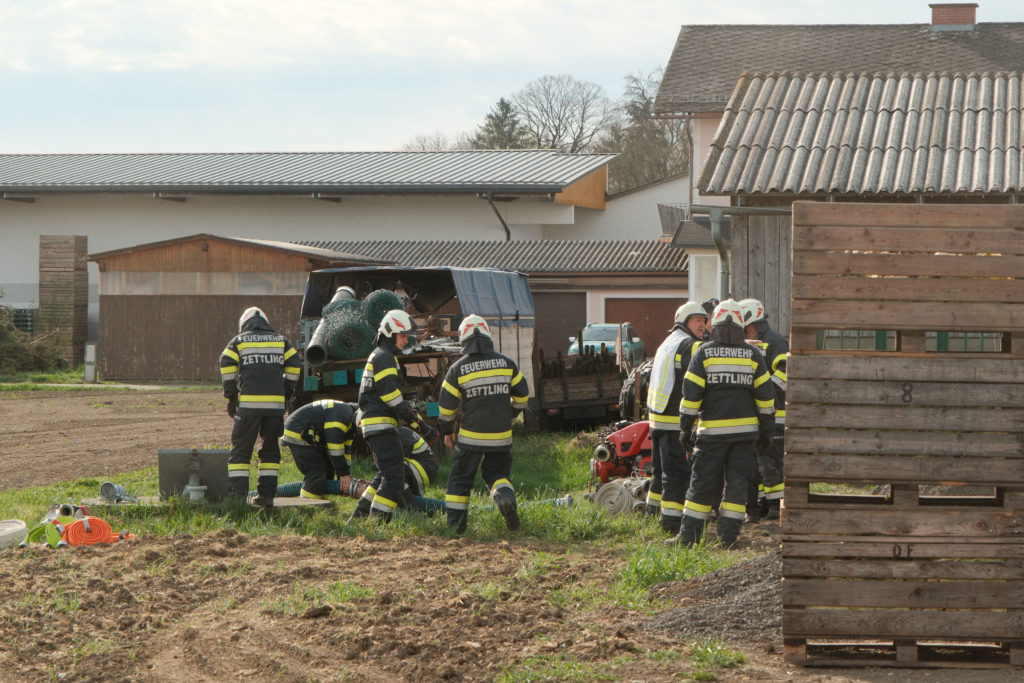 Ein wichtiger Teil der Übung war außerdem das Herstellen einer Wasserversorgung aus einem Bewässerungsbrunnen. Auch dieser Bereich ist im Einsatzfall von großer Bedeutung, da eine funktionierende und rasch aufgebaute Löschwasserversorgung eine wesentliche Grundlage für eine wirksame Brandbekämpfung ist. Das Ansaugen, der Aufbau der Leitungen und das Zusammenspiel der Geräte konnten dabei gezielt trainiert werden.