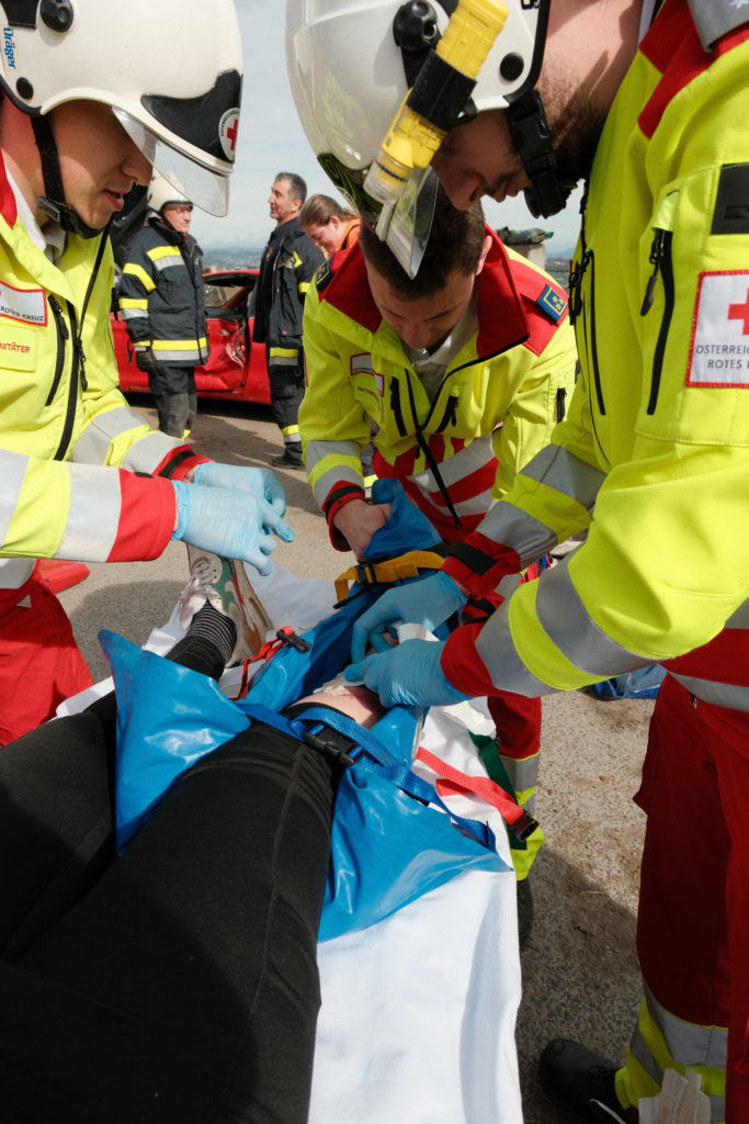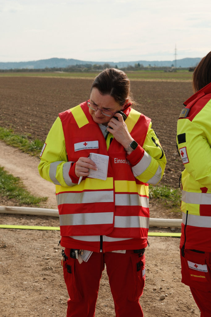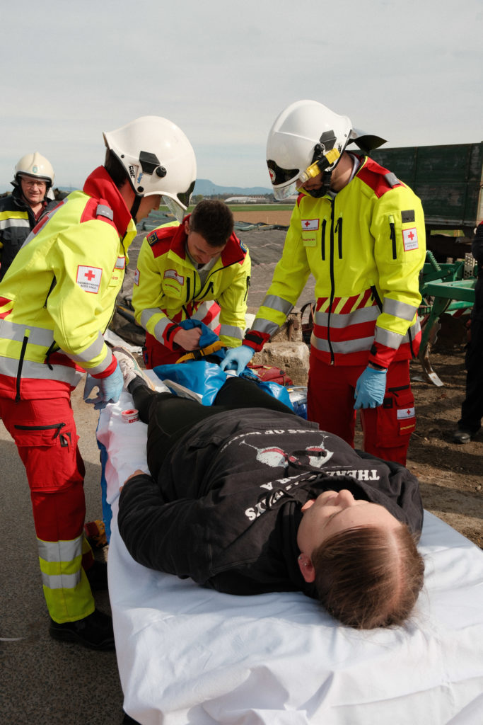 Ein weiteres Szenario stellte einen Verkehrsunfall mit verletzten Personen dar. Dabei wurden die Erkundung der Lage, die Sicherung der Unfallstelle, die Betreuung der verletzten Personen sowie die Zusammenarbeit der eingesetzten Kräfte trainiert. Solche Übungsannahmen gehören zu den klassischen, aber besonders anspruchsvollen Einsatzlagen, da oft unter hohem Zeitdruck gearbeitet werden muss.